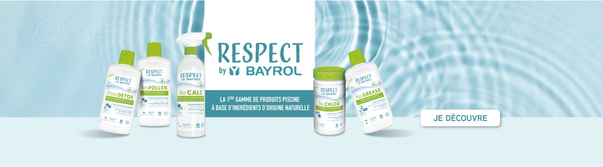 Découvrez la gamme de Respect by BAYROL et effectuez le traitement de l'eau de votre bassin avec des produits à base d'ingrédients d'origine naturelle.